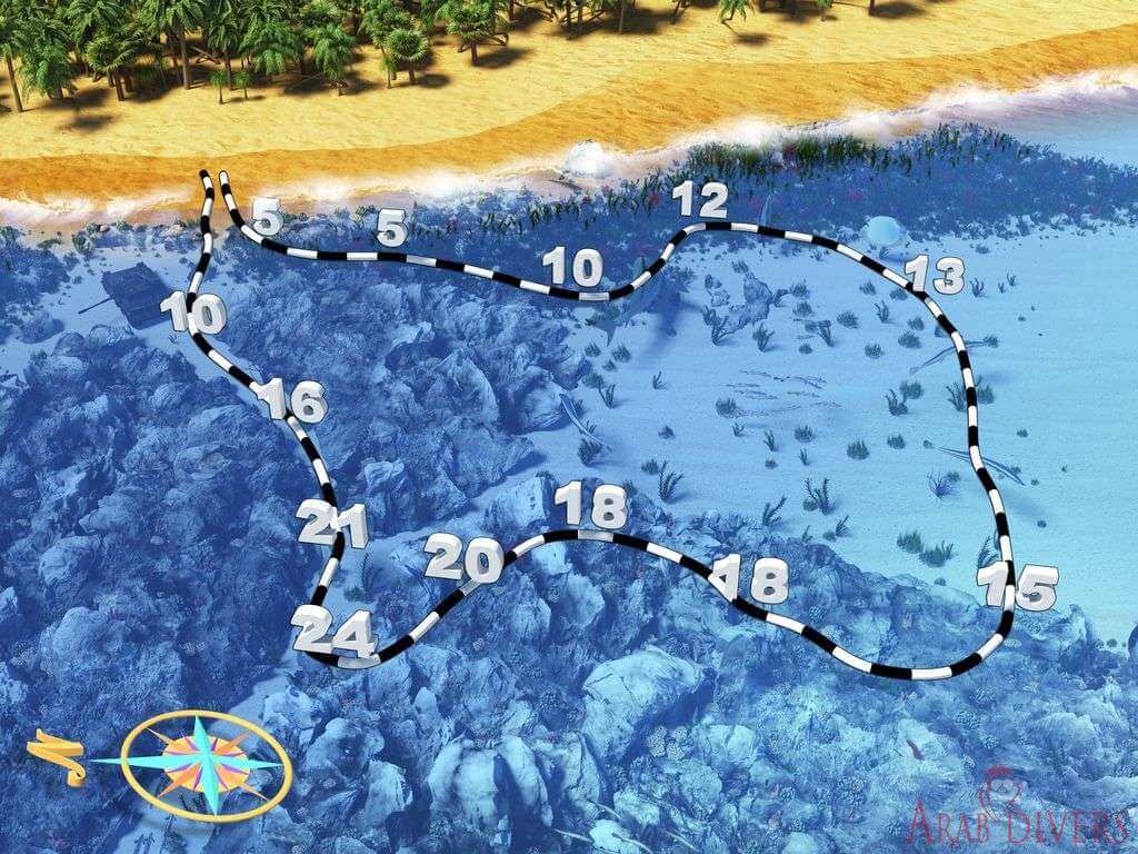 - : عمق ضحل، حطام، سهولة الوصول، ارتفاع طفيف