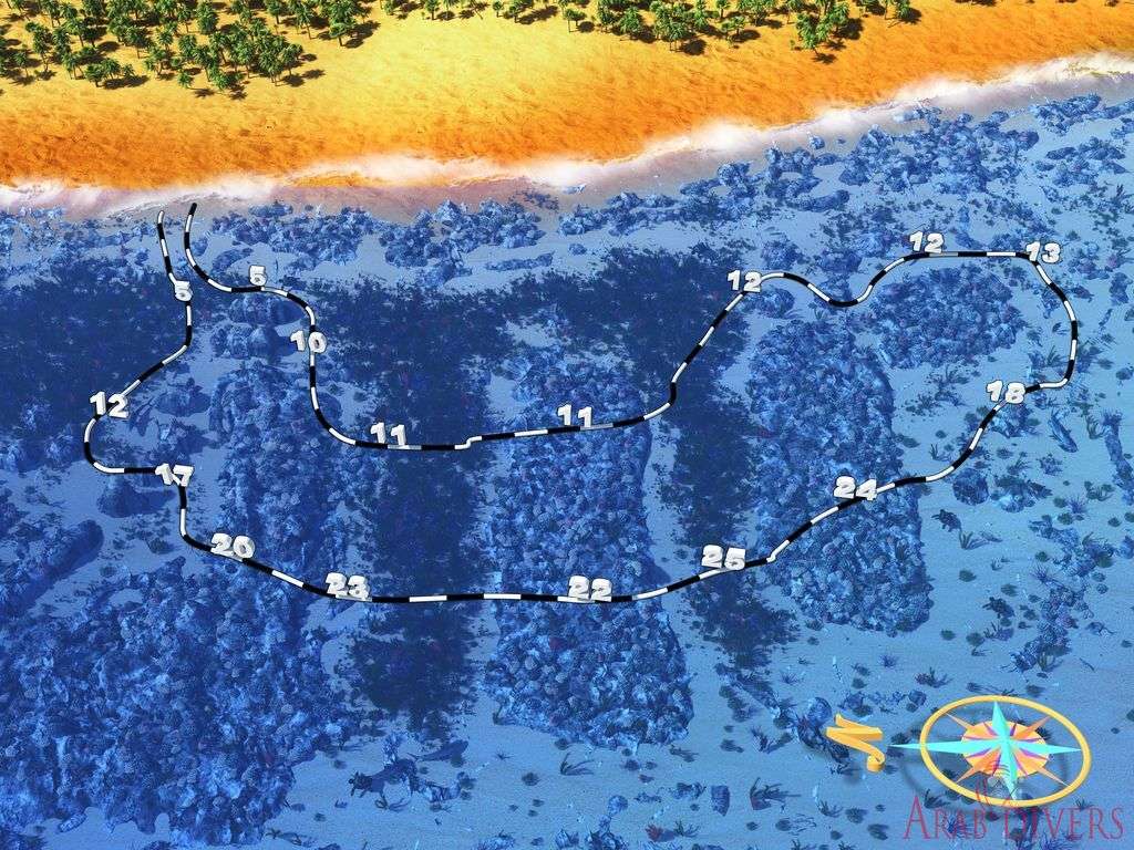 We will enter from the shore and descend here to a depth of around 12m. Blue Coral – names for, you guessed it, this site’s remarkable displays of blue Acropora coral – is entirely open-ended in terms of direction and depth. The reef begins at 10m and extends all the way out to 25m with 3 massive coral shelves and a number of pinnacles poking out of a sandy bottom and seagrass bed. So where do you want to go?