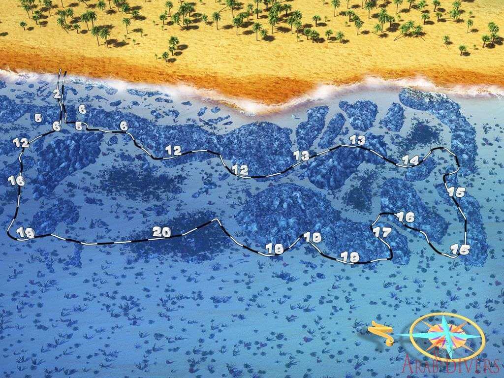 Following the sloping coral downward with emperorfish, glassfish, grouper, lionfish and other colourful company, you'll pass a third pinnacle and turn left, where the reef begins to flatten out - except for a cabbage coral the size of a house, home to numerous species of reef fish large and small. You'll find the Gorgon easily: she's huge and waves imposingly over the active reef below. You'll see stonefish and lionfish lying in wait, and a nearby table coral is home to a large yellowmouth moray.