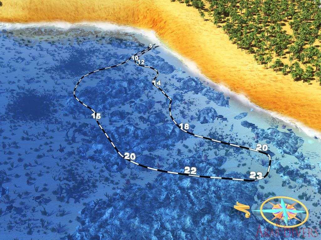 A huge coral outcropping forms a natural, swimthrough mini-cave around 30m – this is Ashraf’s Grotto, from which the site derives its name.